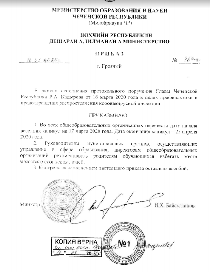 В целях профилактики и предотвращения распространения коронавирусной инфекции, дата начала весенних каникул переносится на 17 марта 2020 года. Дата окончания каникул - 25 апреля 2020 года!