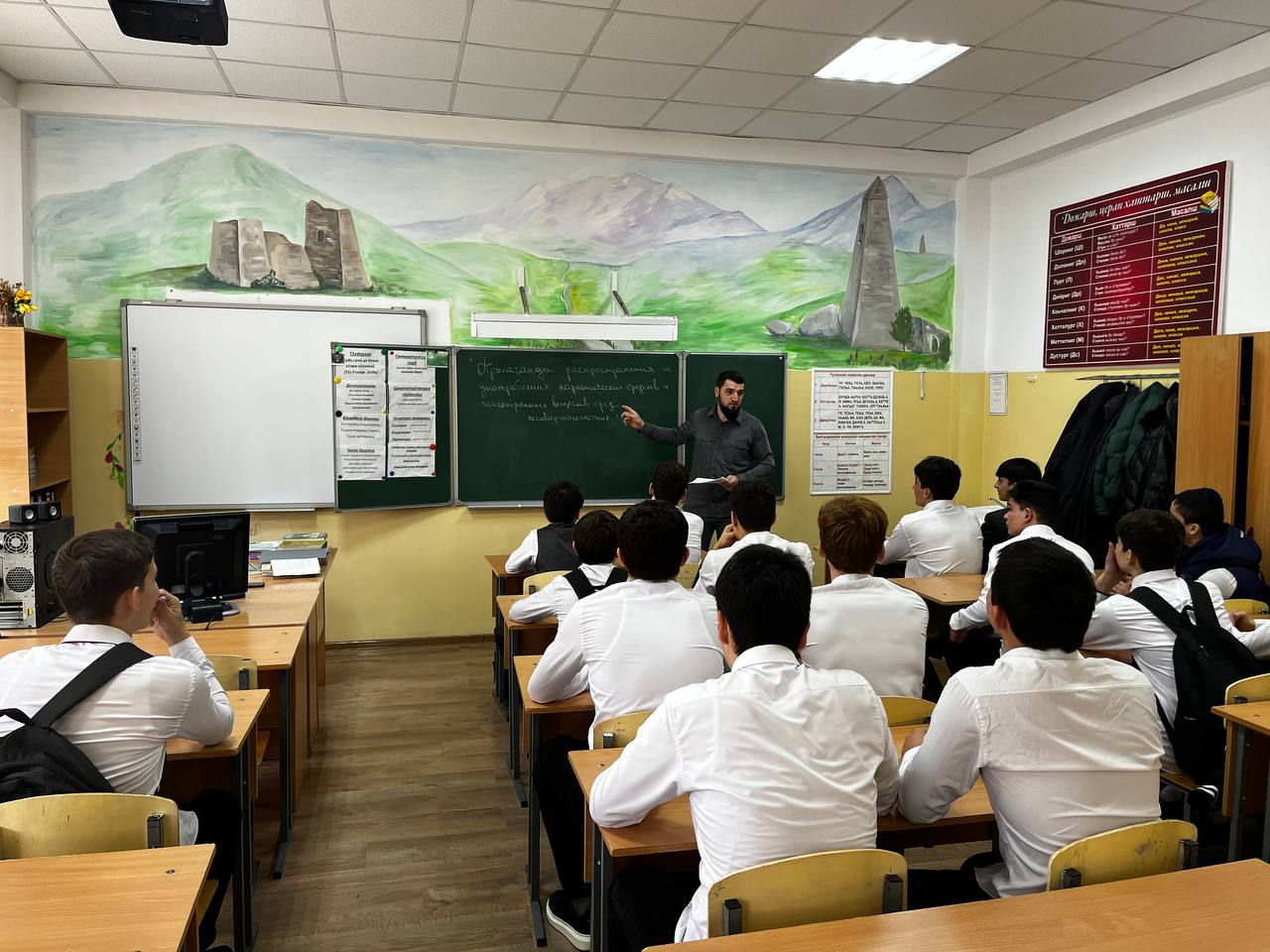20.11.2023Отделом в Шалинском районе УФСБ России по Чеченской Республике совместно с МУ «Отдел образования Шалинского муниципального района Чеченской Республики» проведено профилактическое мероприятие в МБОУ "СОШ "Терра Нова" им. Шарани Дудагова на тему: «Ответственность за пропаганду распространения и употребления наркотических средств и психотропных веществ среди несовершеннолетних».
